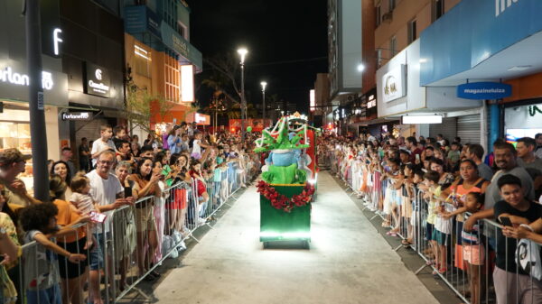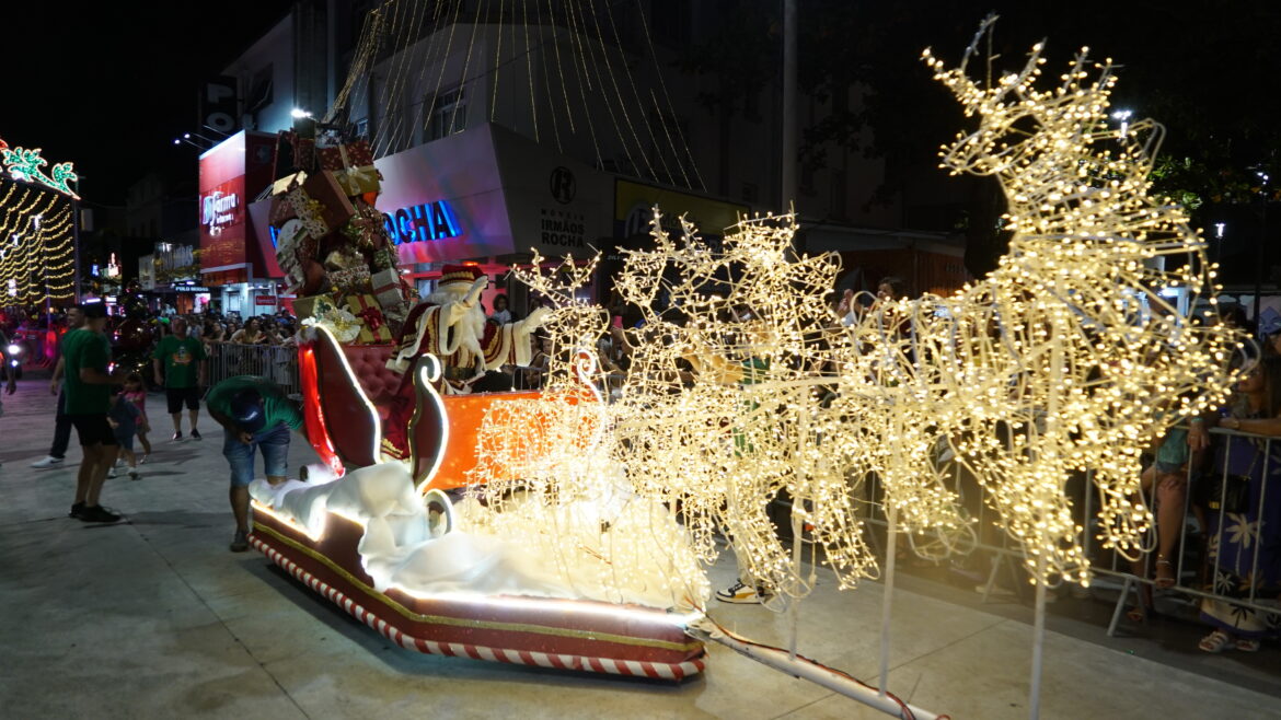 O primeiro Grande Desfile do Natal Encanto 2025, realizado na noite deste sábado (13), na Rua Hercílio Luz, superou as expectativas e emocionou o público. As cores, luzes, músicas e fantasias fizeram com que o Centro de Itajaí ficasse lotado, com 25 mil pessoas na Hercílio Luz.