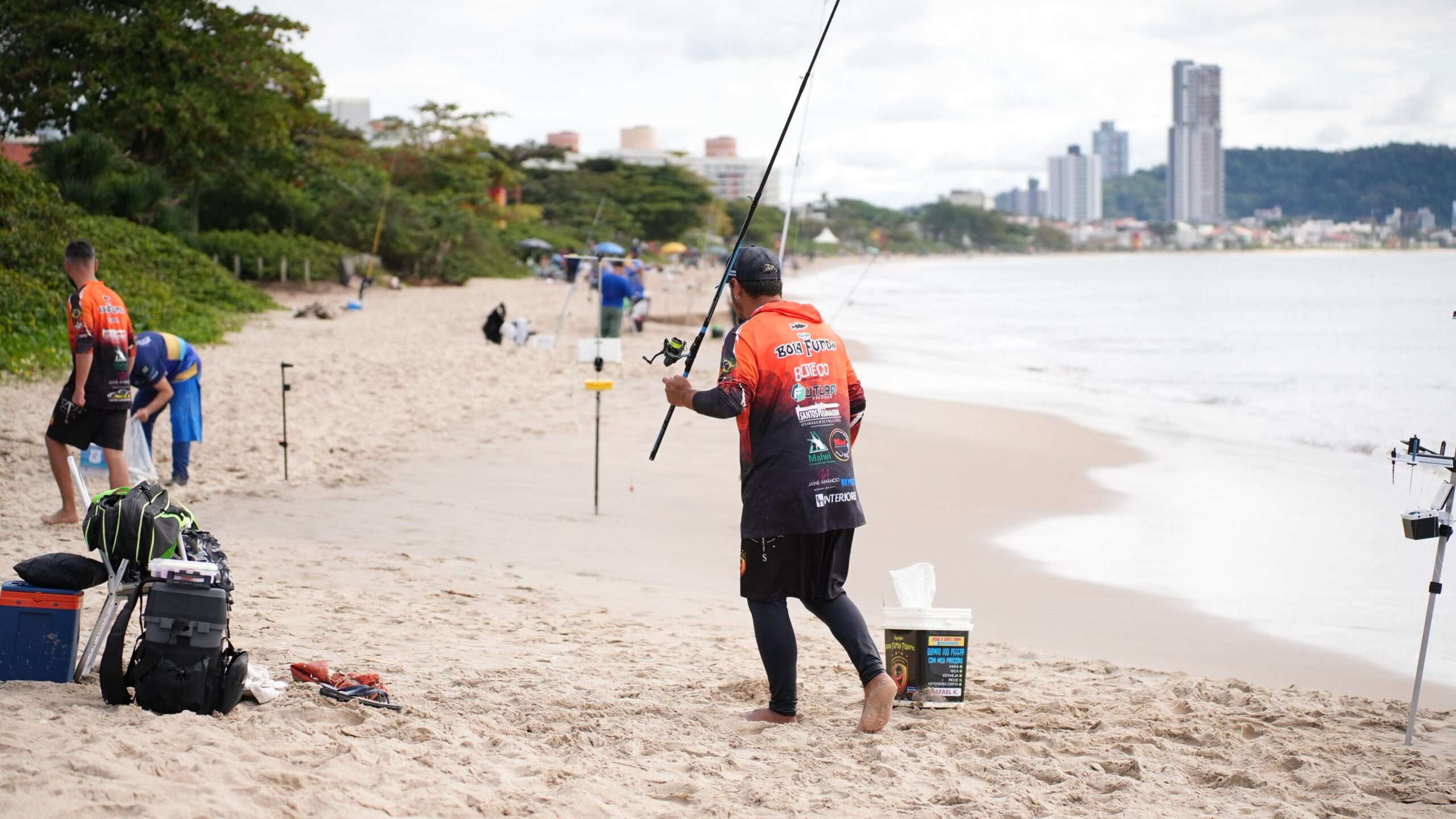 A Praia da Armação foi palco, neste domingo (8), do 1º Torneio de Pesca de Praia, realizado pelo Grupo de Pesca Cação e Viola, com apoio da Fundação Municipal de Esportes (FME) e da Secretaria de Agricultura e Pesca de Penha. O evento reuniu 143 participantes de cerca de 10 clubes de pesca.