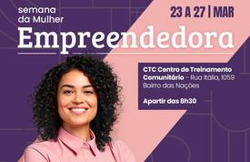 A 2ª Semana da Mulher Empreendedora chega ao seu último dia nesta sexta-feira (27), com programação especial no Centro de Treinamento Comunitário (CTC), no Bairro das Nações. Um dos destaques do dia é a Feira de Empreendedorismo.
