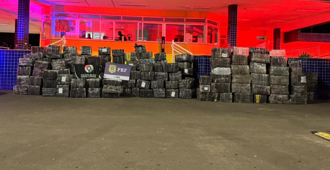 Na noite de sexta-feira (13), uma ação integrada entre Polícia Rodoviária Federal (PRF) e Polícia Militar Rodoviária de SC (PMRv) apreendeu 9.470 toneladas de maconha na BR-282, em Joaçaba e Campos Novos. Três homens foram presos.