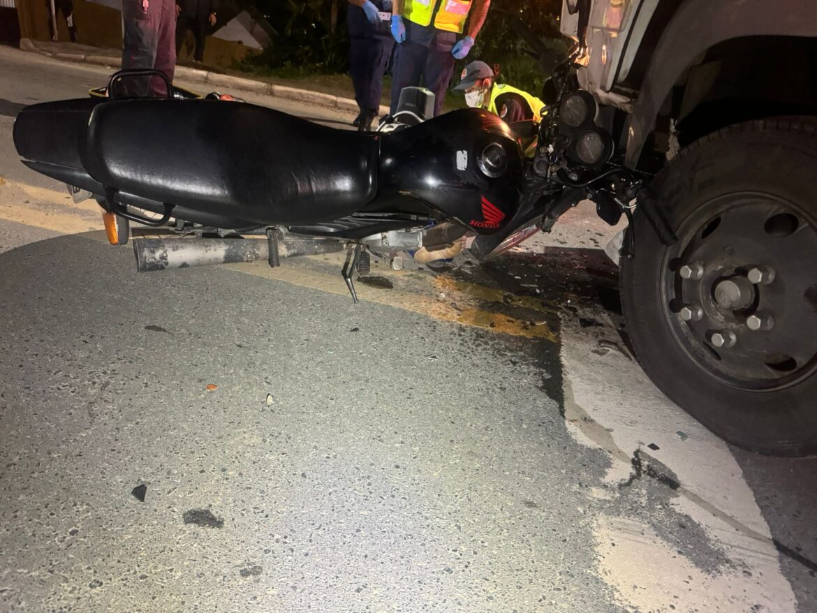 Na madrugada desta quinta feira, 18, a Polícia Militar foi acionada para atendimento de ocorrência de Acidente de Trânsito com pessoa morta, envolvendo um caminhão e uma motocicleta.