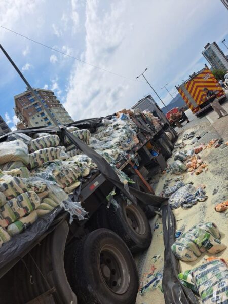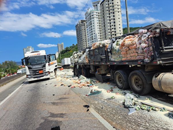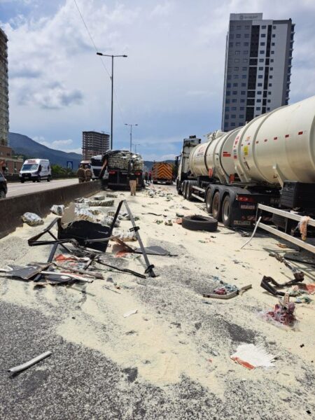Um acidente de trânsito envolvendo dois caminhões e dois veículos de passeio mobilizou equipes de resgate na BR-101, em Itapema, nesta semana. A ocorrência foi atendida pela guarnição do Corpo de Bombeiros, que encontrou duas pessoas feridas em um dos automóveis envolvidos.