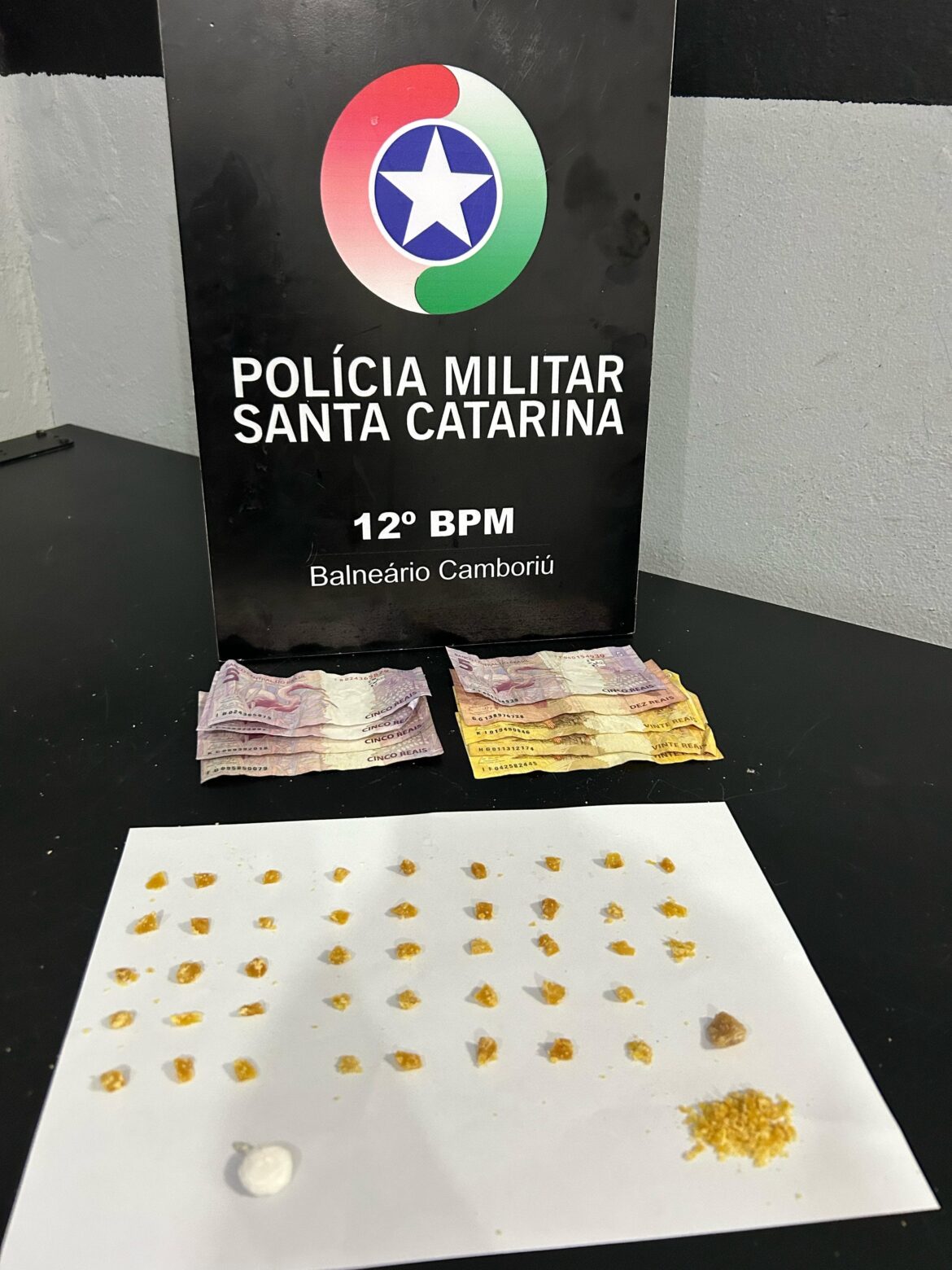Com a maioria dos abordados nada de ilícito foi encontrado, porém, os policiais localizaram o invólucro descartado, que continha aproximadamente 8,6 gramas de crack — já fracionadas em 43 porções prontas para venda e uma porção maior ainda não fracionada — além de 0,7 grama de cocaína.
