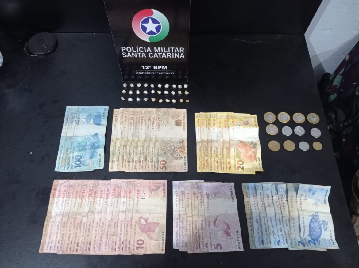 Nos bolsos do casaco da adolescente, de 17 anos, foram encontradas 30 pedras de crack totalizando 5.9 gramas, além da quantia de R$ 1093,20 e 01 aparelho de Celular.
