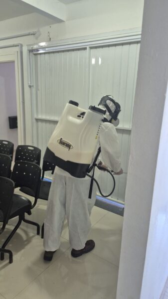 A técnica utilizada é a Borrifação Residual Intradomiciliar (BRI), que consiste na aplicação de inseticida em paredes internas e externas e em pontos estratégicos onde os mosquitos adultos costumam repousar. No tratamento, está sendo utilizado o inseticida Fludora BRI, que atua de forma residual, eliminando o mosquito no momento do pouso, seja durante o repouso ou no ato da postura de ovos, contribuindo para a redução da transmissão da dengue.