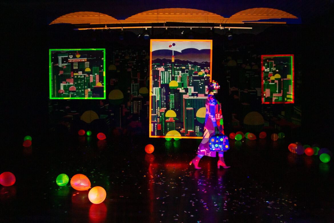 “A Maravilhosa Princesa de Bolinhas” propõe uma imersão lúdica e sensorial em um mundo feito de bolinhas. A peça, livremente inspirada na obra da artista japonesa Yayoi Kusama, apresenta o trajeto de um corpo no espaço. Este corpo, ao relacionar-se com o ambiente à sua volta, vai se tornando ele próprio. Cenários, luz negra, elementos cênicos, ambientação sonora e imagens criadas por inteligência artificial, aliados ao corpo da atriz, ajudam a criar este universo fantástico que convida a plateia a imaginar suas próprias histórias.