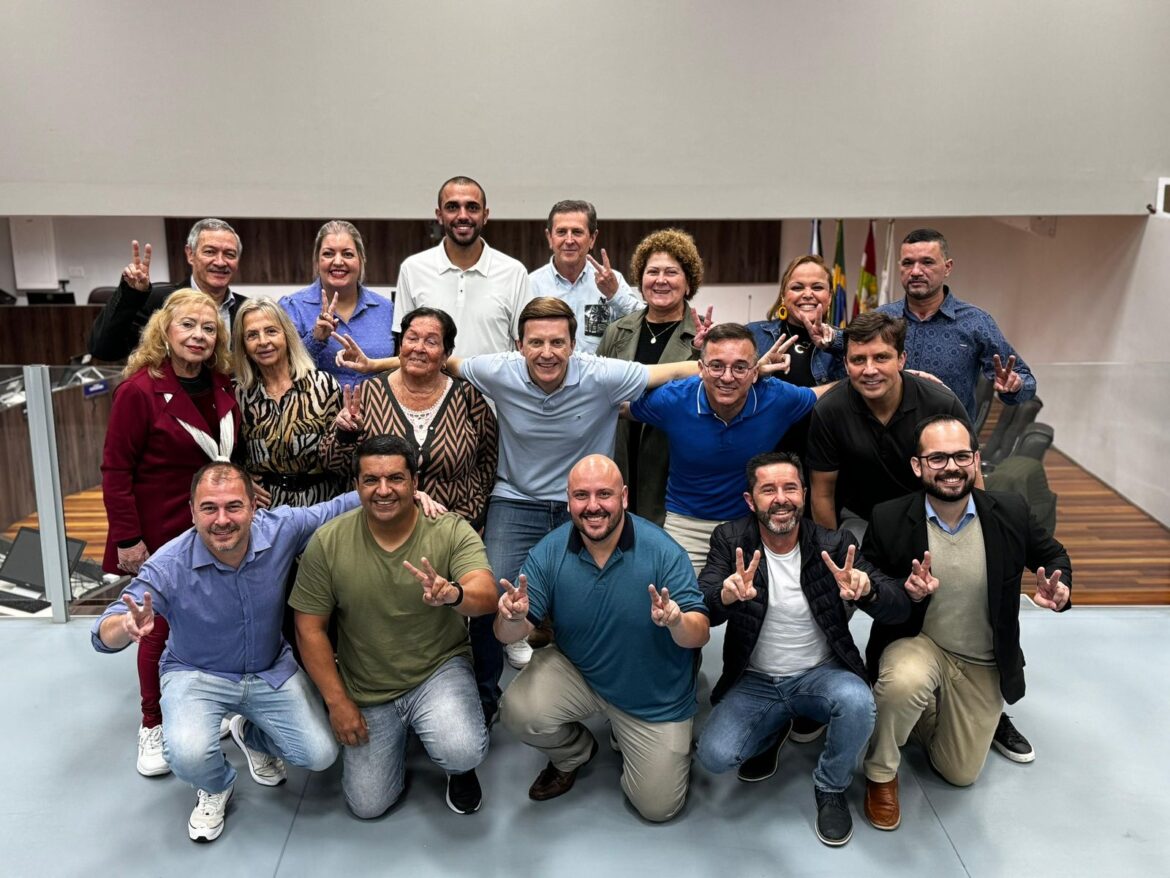 Estiveram presentes na reunião, os 17 pré-candidatos a vereador, o presidente da sigla, David Labarrica, além de Peeter Grando e do Prefeito de Balneário Camboriú, Fabrício Oliveira.