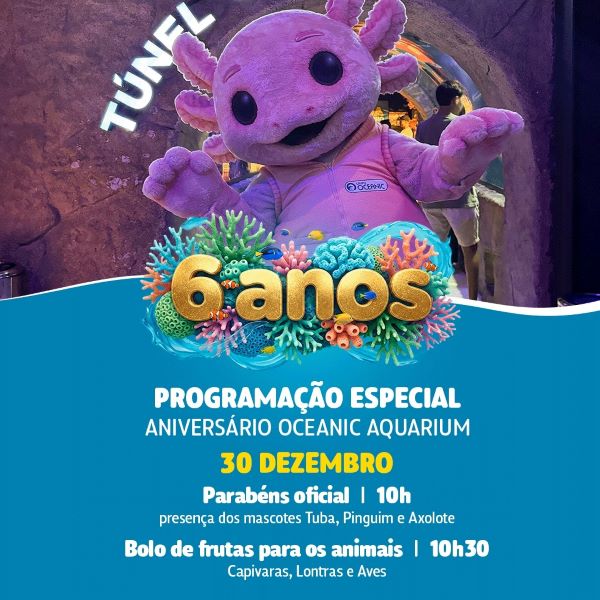 No dia 30 de dezembro, às 10h, está previsto os “parabéns oficial” pelos seis anos do atrativo, com atividade especial para celebrar a data com os animais que vivem no aquário.