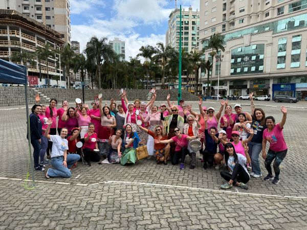 Na manhã desta sexta-feira (24), a Praça da Paz foi palco do Aulão Outubro Rosa, iniciativa da Secretaria de Saúde de Itapema que uniu atividade física, música e informação para conscientizar sobre a prevenção do câncer de mama e de colo de útero.