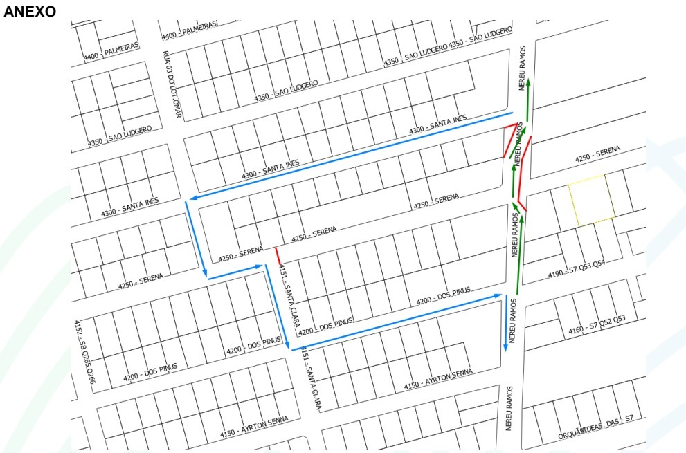 Como rotas alternativas, há duas possibilidades: para quem trafega no sentido Barra Velha, o trânsito será desviado na própria Avenida Nereu Ramos, e no sentido Centro, o desvio será pela Rua Santa Inês até Rua dos Pinus.