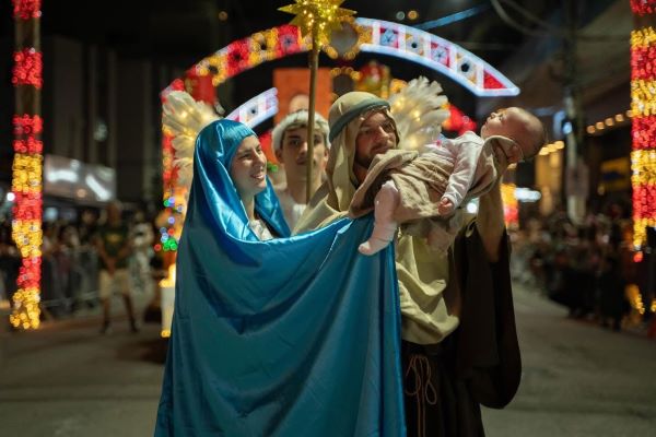 O desfile conta com 17 alas temáticas, três carros alegóricos e dois tripés cênicos, além da participação de centenas de artistas, voluntários e integrantes de entidades locais. Personagens natalinos, o Papai Noel, o mascote Aref e apresentações cheias de cor e emoção prometem encantar públicos de todas as idades.