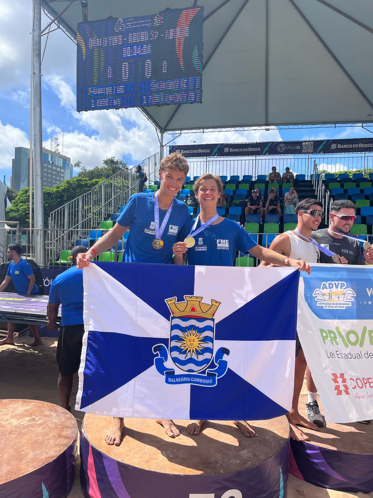 Os atletas Arthur Póvoas e Thomas Endler, bolsistas da Fundação Municipal de Esportes (FME) de Balneário Camboriú, conquistaram a medalha de ouro na segunda etapa do Circuito Brasileiro de Vôlei de Praia Sub-19 – Temporada 2025. A competição, promovida pela Confederação Brasileira de Voleibol, aconteceu entre os dias 20 e 23 de abril no Parque da Cidade – em Brasília (DF).