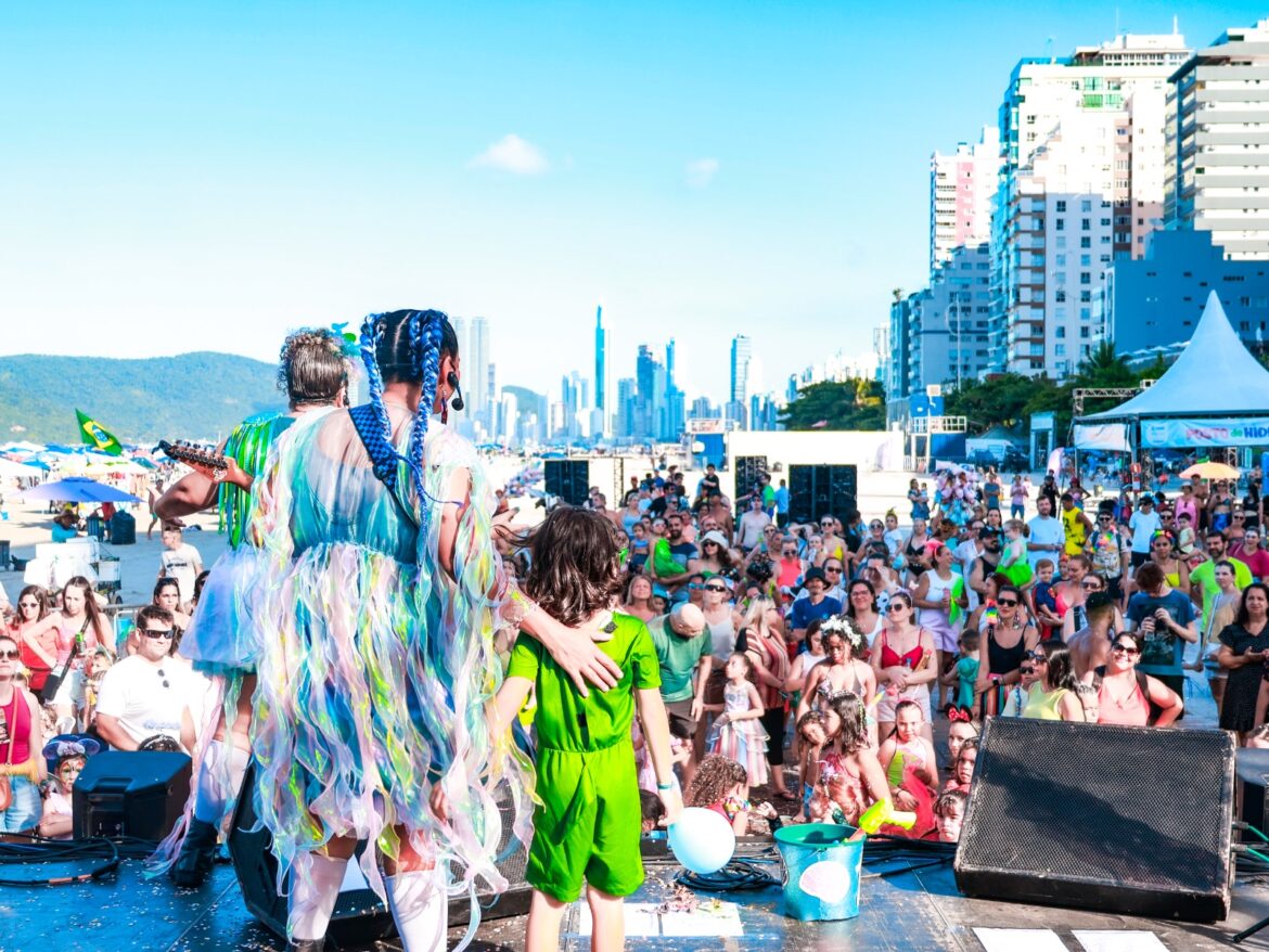 A tarde de sábado (01) foi de muita alegria e descontração no palco do BC Folia, da Prefeitura de Balneário Camboriú, montado na areia da Praia Central. Mais de cem crianças participaram do Carnaval Infantil, que contou com animação da dupla As Mareadas.