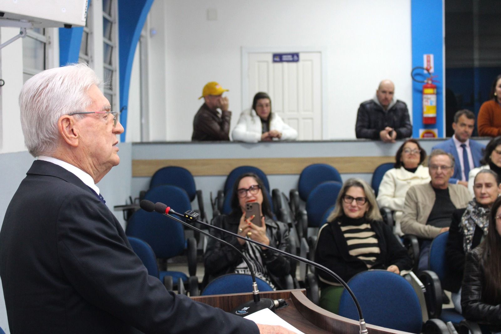 Em sua manifestação na tribuna, Willian destacou a perseverança de seu homenageado, destacando o fato de Moacir ser o primeiro nativo de Porto Belo a obter o diploma de advogado: “É uma alegria, uma honra e uma satisfação ter entregue esta moção ao senhor”, afirmou.