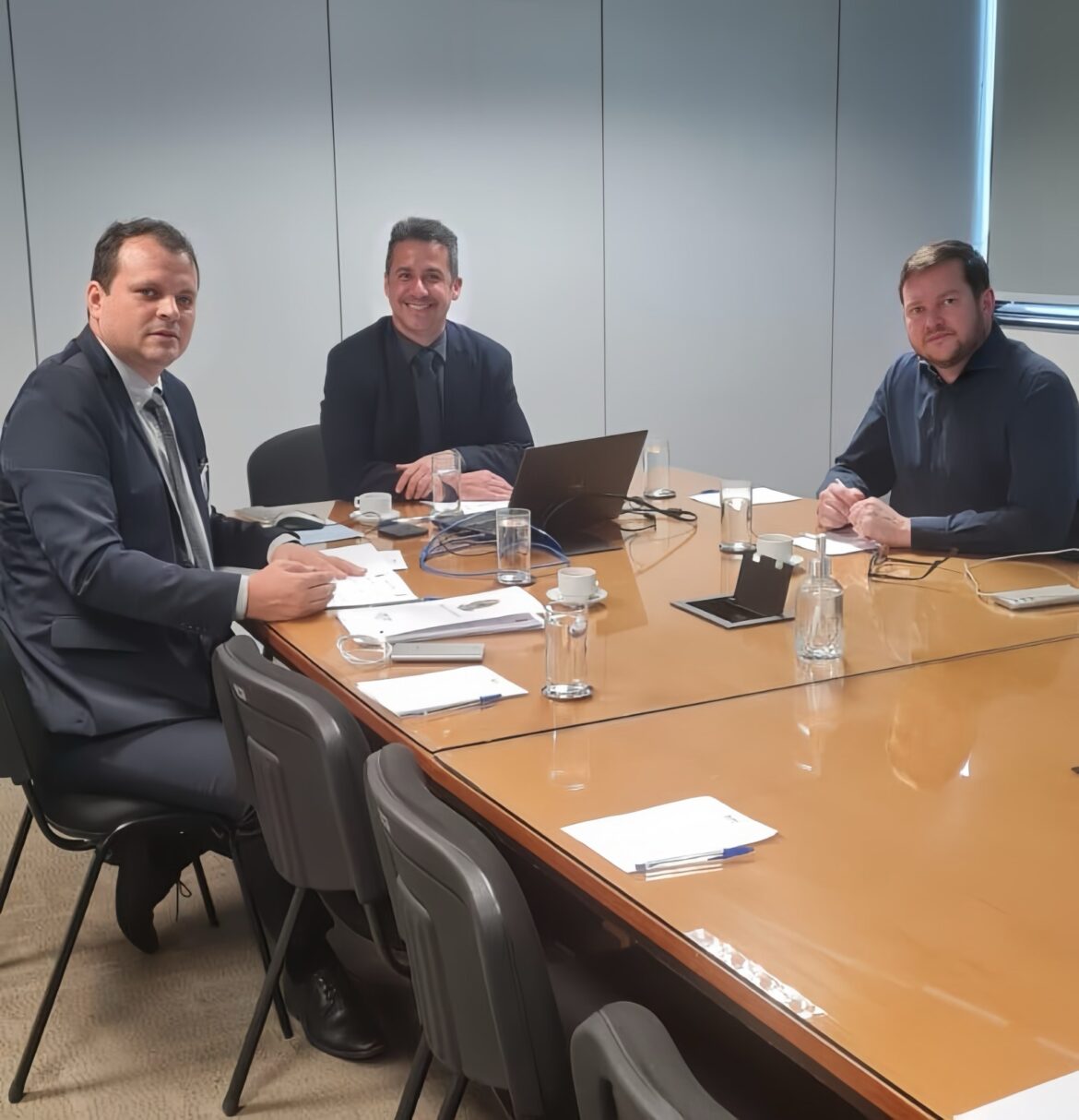 Durante uma viagem a Brasília, o Vereador Alexandre Teixeira Silveira articulou uma reunião com a Agência Nacional de Transportes Terrestres (ANTT), com o apoio de Allan Duarte Milagres Lopes, Chefe da Assessoria Especial de Relações Parlamentares e Institucionais. A reunião contou com a presença de Cálicles Mânica, Coordenador de Demandas Federais, e Roger da Silva Pêgas, Superintendente de Infraestrutura Rodoviária.