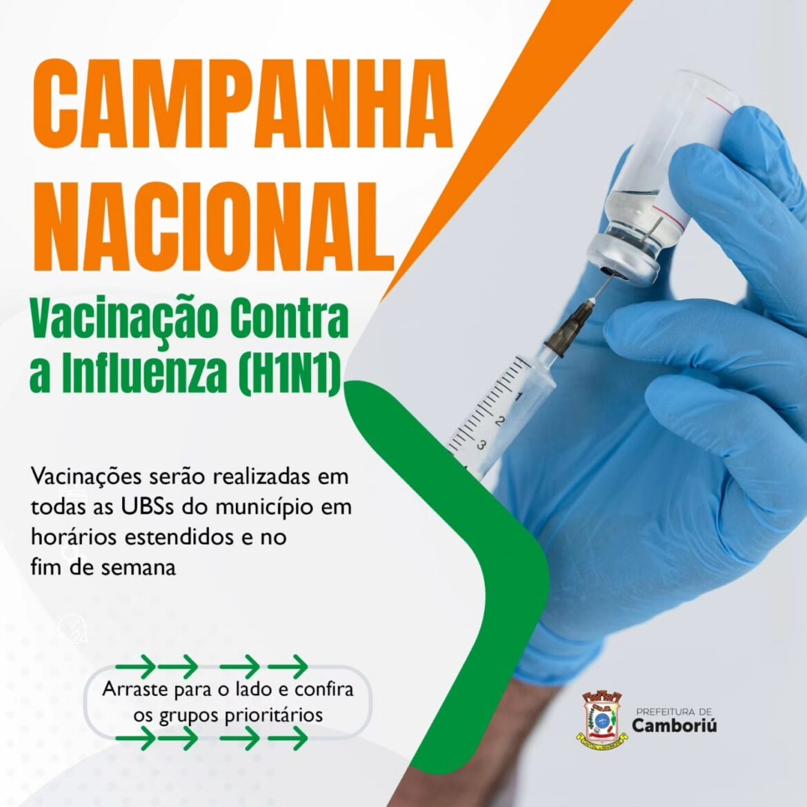 A Campanha de Vacinação Contra a Gripe segue em Camboriú com foco na imunização de moradores que fazem parte dos grupos prioritários. A ação é voltada a grupos como crianças com menos de seis anos, gestantes, puérperas, idosos com 60 anos ou mais, povos indígenas e entre outros.