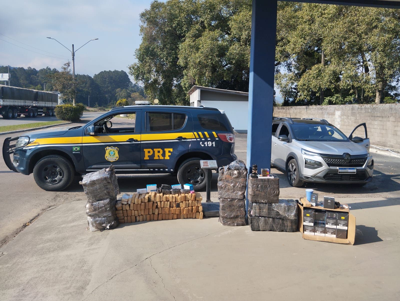 Inicialmente, o casal afirmou que voltava de viagem a turismo em Foz do Iguaçu (PR). Contudo, após o aprofundamento da fiscalização e a troca de informações, a dupla confessou ter alugado o carro para transportar entorpecentes e produtos contrabandeados de Foz do Iguaçu a Balneário Camboriú, no litoral norte catarinense.