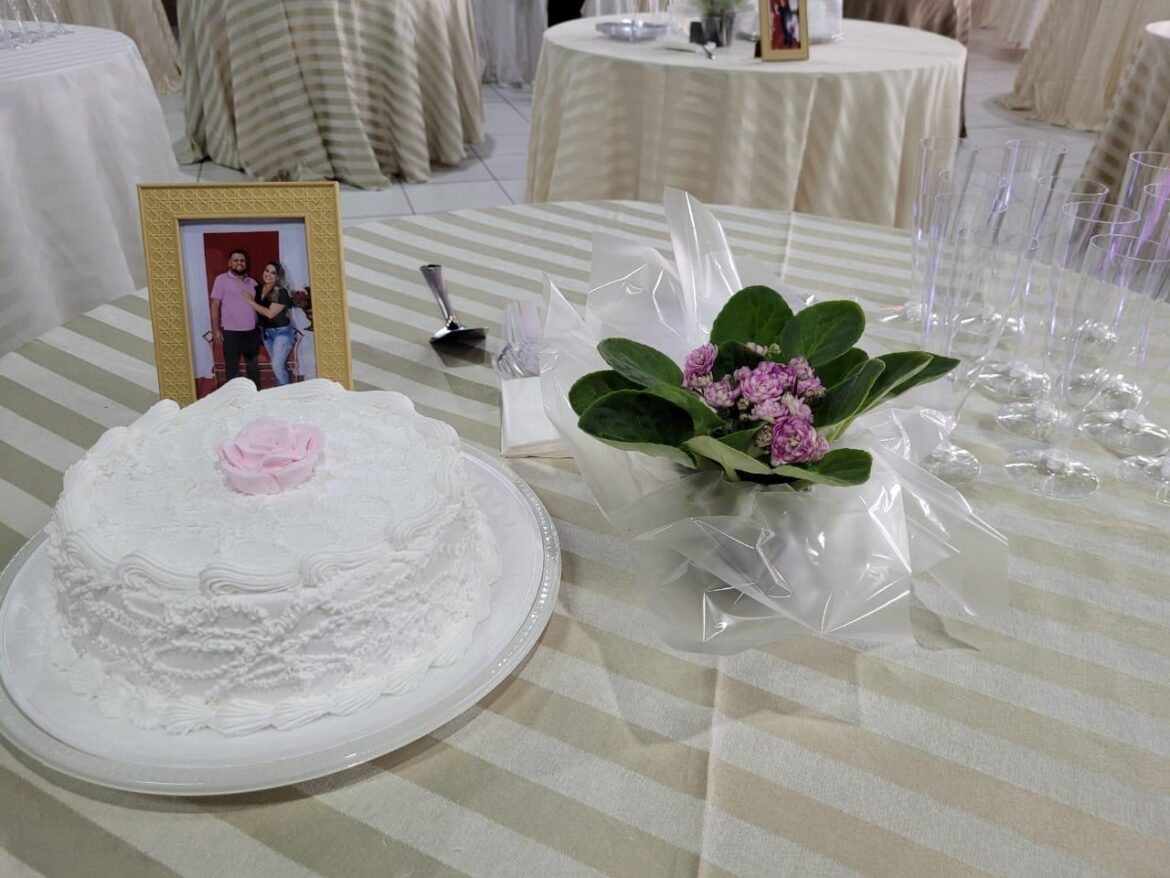 Os noivos celebraram e tudo foi oferecido gratuitamente para os participantes, que tiveram trajes, bolo e um espumante sem álcool. Os homens tiveram à disposição terno, calça e camisa social, além de gravata. Já as mulheres puderam casar de vestido, arranjo do cabelo e anágua de tule. Além da celebração, os participantes também puderam dançar a tão esperada valsa do casal.