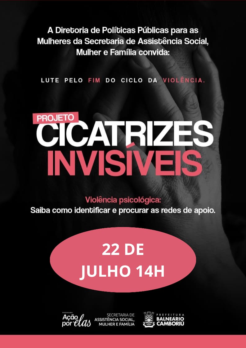 Nesta terça-feira (22), às 14h, o projeto Cicatrizes Invisíveis será realizado no CTC, localizado na Rua Itália, nº 1.059, no Bairro das Nações, em Balneário Camboriú. A ação propõe uma importante reflexão sobre a violência psicológica, uma das formas mais silenciosas de agressão.