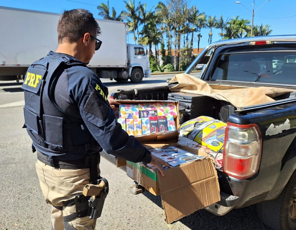 Na manhã dessa terça-feira (13) em Joinville, na BR-101, policiais rodoviários federais apreenderam 341 cigarros eletrônicos contrabandeados provenientes do Paraguai.