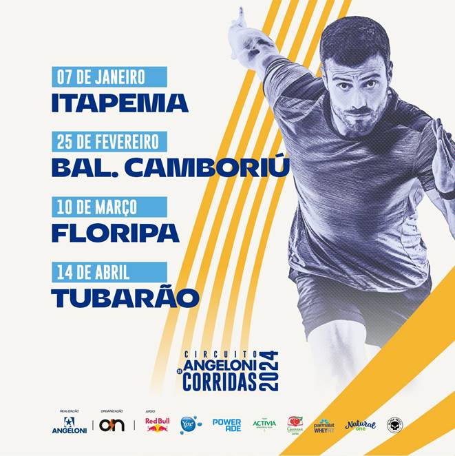 Saúde e bem-estar para todos. Com esse propósito, começa neste domingo, dia 7 de janeiro, o segundo Circuito Angeloni de Corridas, programado para acontecer em todo o ano de 2024, com 12 etapas mensais nas seguintes cidades: Itapema (07/01), Balneário Camboriú (25/02), Florianópolis (10/03) e Tubarão (14/04). As corridas em Blumenau, Criciúma, Curitiba, São José, Jaraguá do Sul, Joinville, Londrina e Maringá terão as datas definidas em breve.