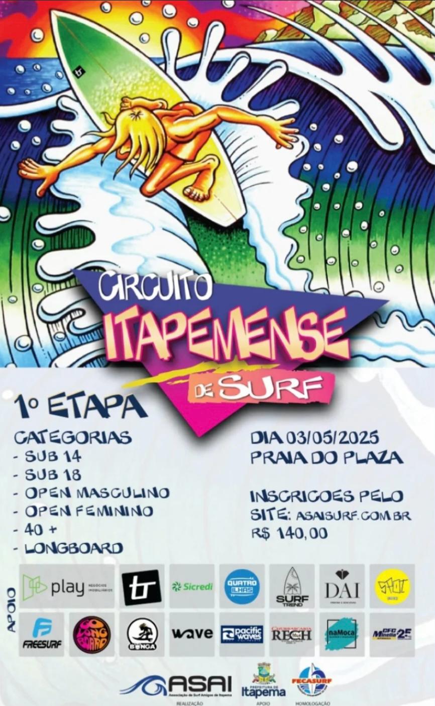 Organizado pela ASAI e homologado pela Federação Catarinense de Surf (Fecasurf), o circuito chega como uma iniciativa importante para o desenvolvimento do esporte em Itapema.