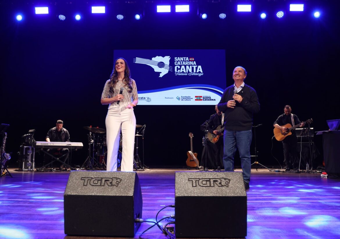 A cidade de Joaçaba conheceu na noite desta quarta-feira, 14, os artistas da próxima fase do Santa Catarina Canta – Festival Sertanejo. A seletiva contou com a presença do governador Jorginho Mello e de grande público. Na etapa, realizada no Teatro Alfredo Sigwalt, foram escolhidos Valentim Prezzotto (categoria infantojuvenil) e Manas Black e Marcos e Mateus (categoria geral).
