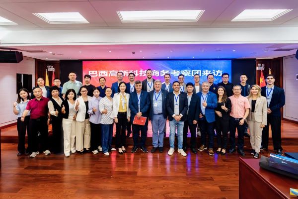 Durante a passagem pela Câmara Internacional de Comércio de Guangzhou, a comitiva brasileira participou de um encontro voltado à aproximação entre governo, setor empresarial e iniciativas de inovação.