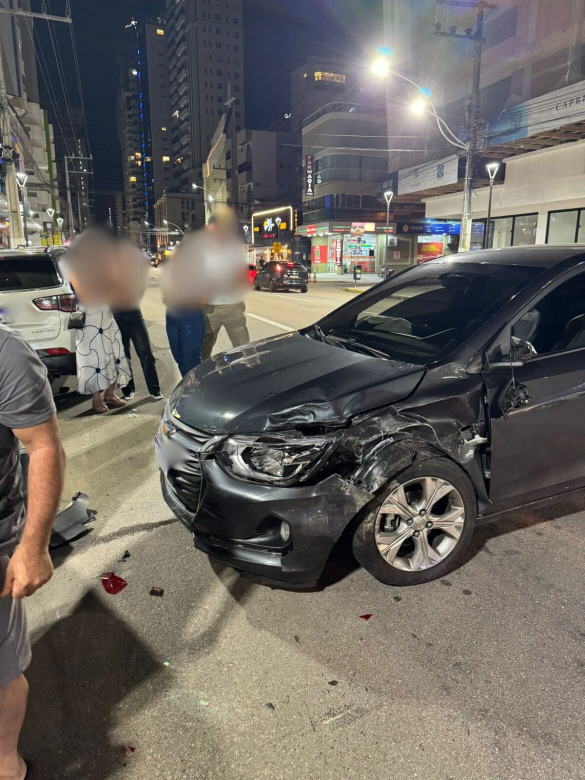 Após verificar o real estado dos veículos e vídeo de segurança de estabelecimento próximo, a guarnição constatou que um veículo Onix trafegava na avenida Nereu Ramos quando colidiu com alguns veículos estacionados, da colisão restaram danos materiais em um Hyundai HB20, um Jeep Compass, Chevrolet Spin e uma Hyundai Veracruz. Após conversa com o condutor suspeito, foi constatado dois ou mais sinais de uma suposta embriaguez, como a fala alterada, odor etílico, dispersão, falta de equilíbrio, dificuldade de equilíbrio, raciocínio e coordenação, dentre outros. Ademais, o suspeito afirmou ter ingerido três garrafinhas de cerveja, sendo uma destas encontrada ao lado da porta do veículo. Diante da situação, os guardas municipais ofertaram ao condutor o etilômetro, o qual recusou o teste. Dessa forma, além da elaboração dos procedimentos administrativos pertinentes ao caso, a GMI conduziu o suspeito até a Delegacia de Polícia para a confecção dos procedimentos cabíveis.