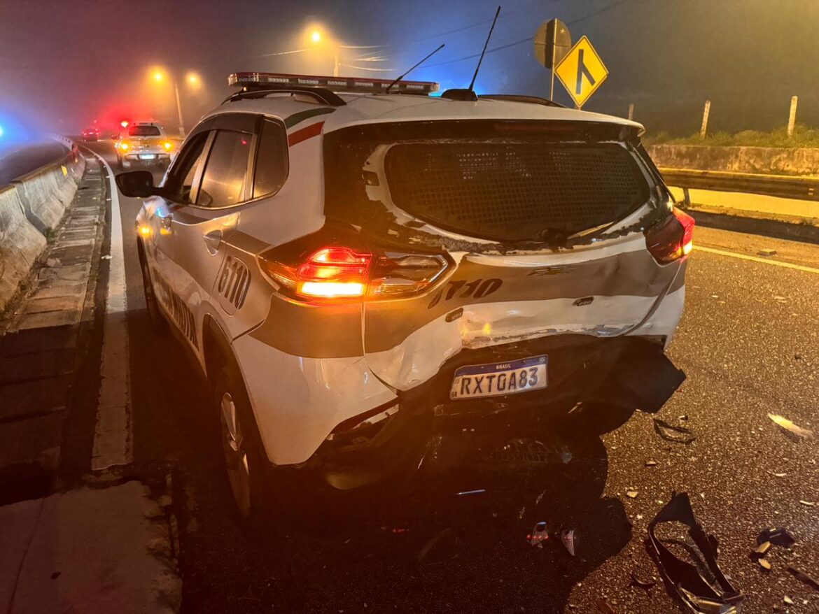 Um condutor embriagado colidiu na traseira de uma viatura do 21°BPM que atendia um capotamento no KM 3,700 da SC-401, em Florianópolis. O fato aconteceu por volta das 23h desta sexta-feira, 16.