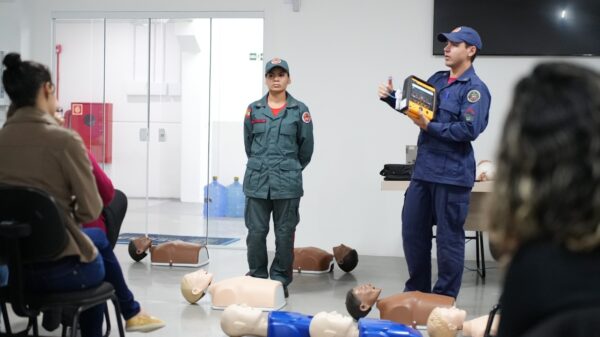 Durante o treinamento, os participantes receberam orientações teóricas e práticas sobre os procedimentos corretos para uma RCP eficaz e também sobre a utilização do DEA – Desfibrilador Externo Automático, equipamento fundamental para os atendimentos em casos de parada cardiorrespiratória.