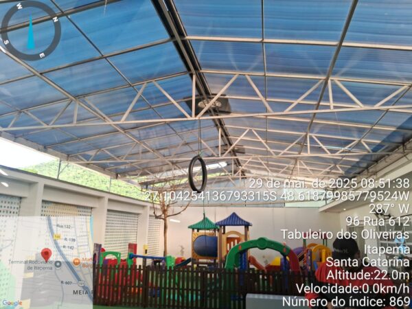 Na rede de ensino, dez unidades escolares registraram algum tipo de dano. No CMEI Rita Maria, parte da cobertura da quadra de recreação foi afetada. Na EMEB Bento Elói Garcia, houve danos na área coberta entre o portão e a secretaria. Já no CMEI Clube do Mickey, resíduos de uma obra vizinha atingiram a cobertura da quadra. A equipe técnica da Prefeitura está notificando os responsáveis para adoção das devidas providências.