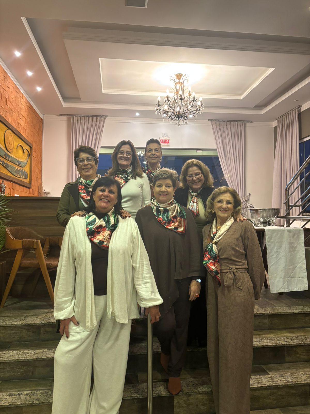 As organizadoras do evento, Leonor, Maria Luiza, Márcia, Sandra, Vera, Rita, Amabile, Maruska, Shideko, Giovana e Dorotéia, foram responsáveis por conduzir a iniciativa, que reuniu dezenas de mulheres em um momento de solidariedade, convivência e engajamento social.