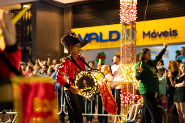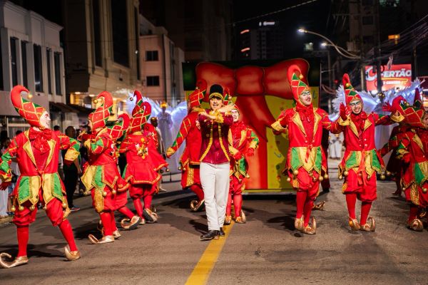 O desfile contou com 17 alas temáticas, três carros alegóricos e dois tripés cênicos, reunindo personagens lúdicos, representações religiosas e elementos tradicionais do Natal. Também integraram o espetáculo a Banda Municipal, associações da terceira idade, grupos culturais, igrejas católicas e evangélicas, além de projetos sociais do município.