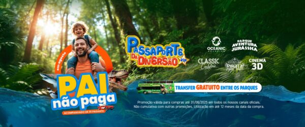O ‘Passaporte da Diversão’ contempla 5 atrações e várias recordações. Com um único ingresso você pode visitar: os pinguins, tubarões, capivaras, lontras, jacarés, além de outras 140 espécies em 30 habitats do Oceanic Aquarium, embarcar numa aventura em realidade aumentada no Cinema 3D, triunfar pelos sete mares no Aventura Pirata, viajar no tempo com os veículos clássicos do Classic Car Show e curtir o Parque Aventura Jurássica com mais de 20 atrações para toda família. Por somente R$159,90!