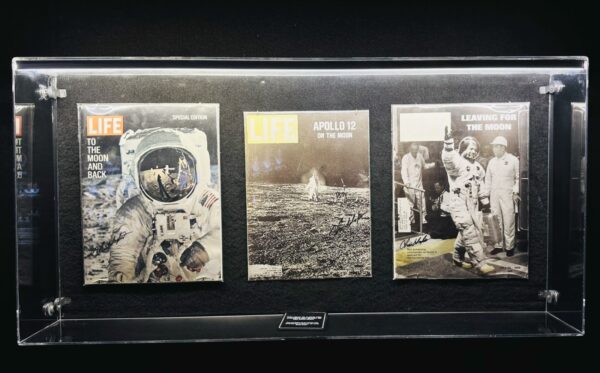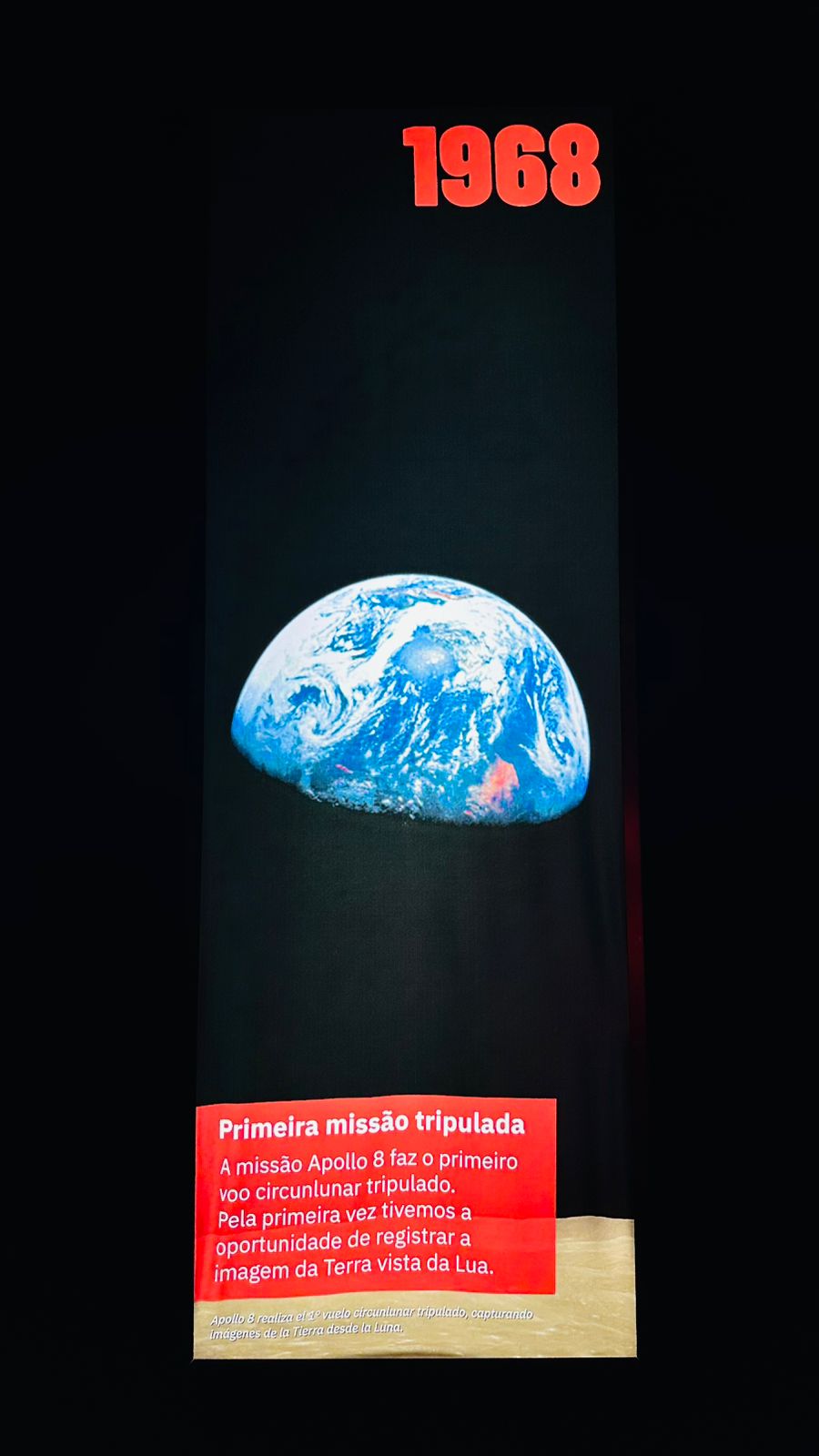 Entre os destaques da mostra em Balneário Camboriú (SC) estão os negativos originais das missões Apollo, incluindo uma cópia autografada da Earthrise pelo astronauta James Lovell, piloto da Apollo 8. Também estão em exibição câmeras Hasselblad de 70 mm, lentes como a 250 mm f/5.6 com filtro e outros equipamentos utilizados nas missões da NASA nas décadas de 1960 e 1970.