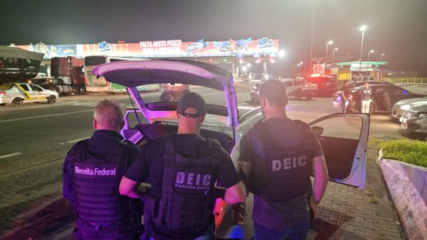 Durante investigação, equipes da DRACO identificaram dois veículos que estariam sendo utilizados para transportar drogas do Estado vizinho para Joinville no intuito de abastecer integrantes de uma organização criminosa que atua em Santa Catarina.