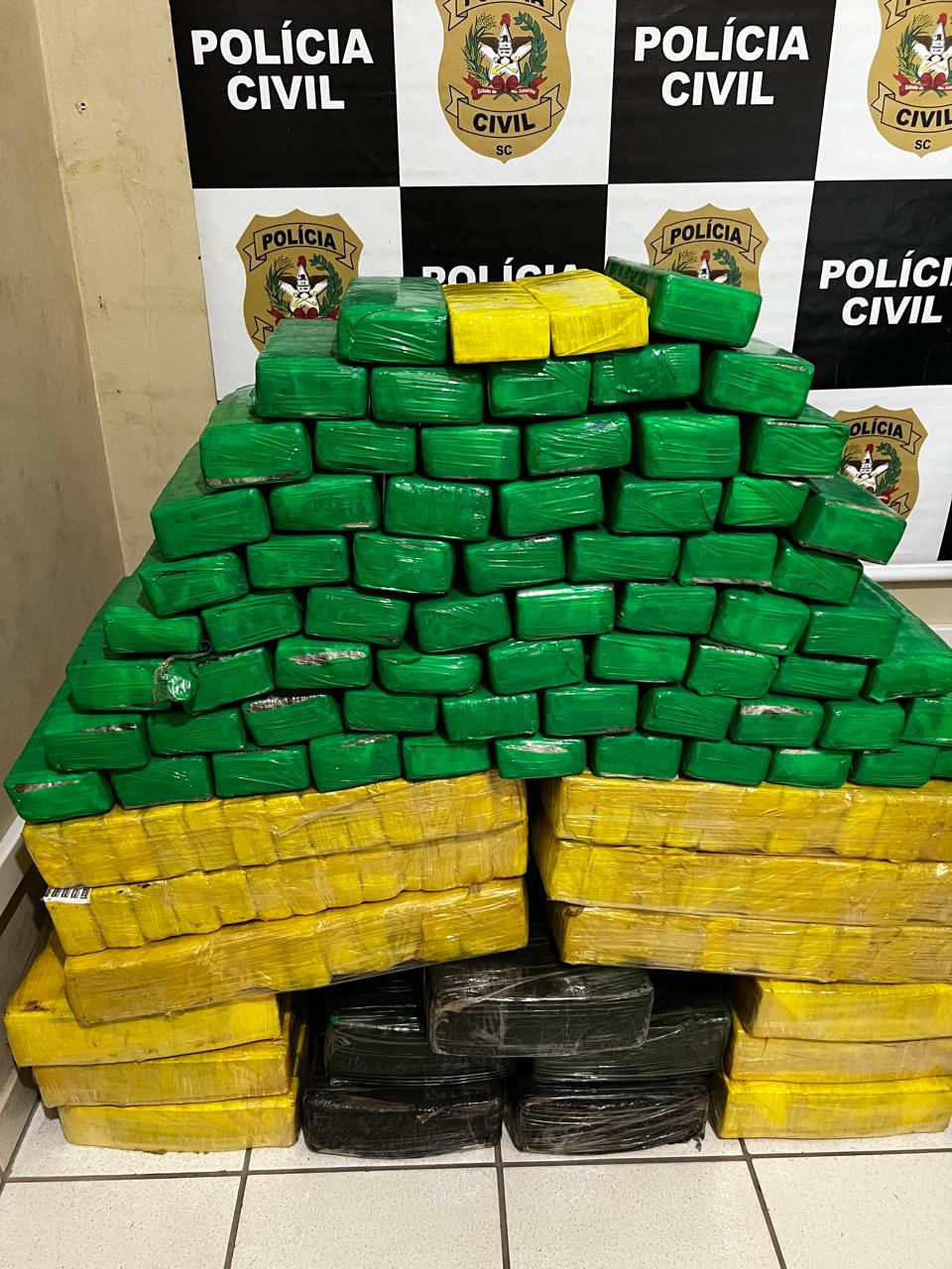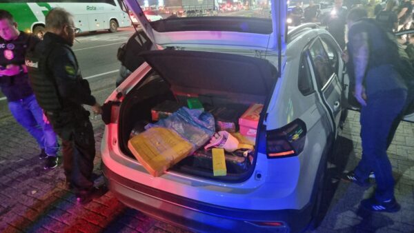 Assim, foi realizada uma barreira policial na cidade de Garuva, ocasião em que foi abordado o veículo VW/Nivus com um casal e num segundo momento o veículo Fiat/Palio também com dois ocupantes que transportavam cerca de meia tonelada de maconha. Foram presos em flagrante quatro pessoas, sendo três homens e uma mulher.