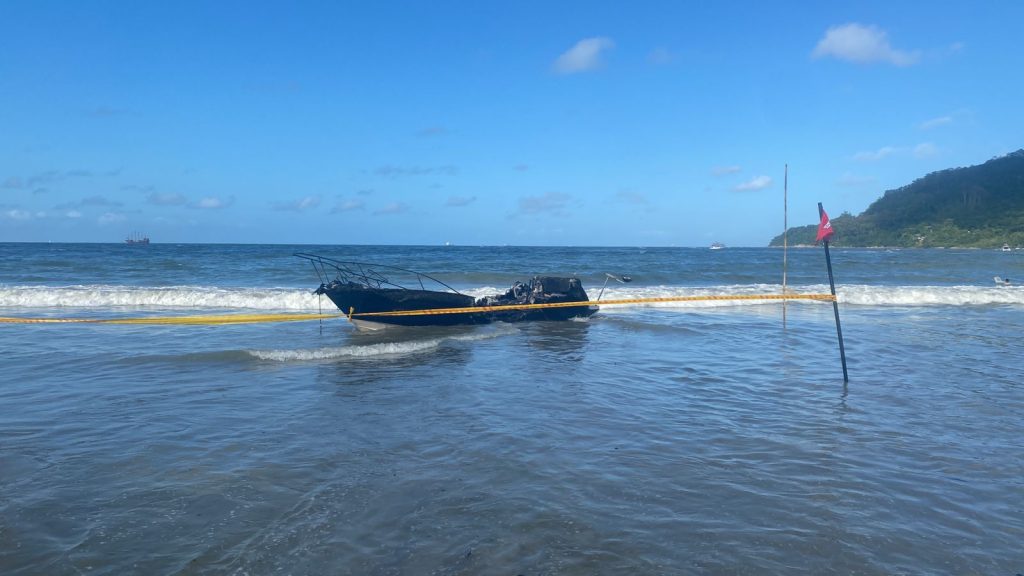 Não há informações sobre a origem do incêndio. Foi isolada a cena, e informado a Secretaria do Meio Ambiente do Município e não houve necessidade de informar a Marinha, que estava no local. Não foi identificado o proprietário.