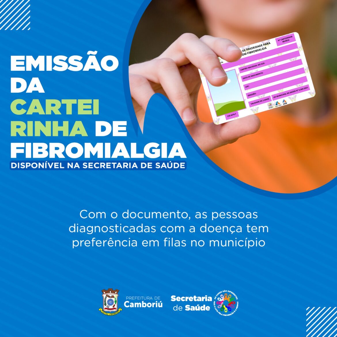 Os moradores de Camboriú que têm diagnóstico positivo para fibromialgia têm preferência nos atendimentos em todos os estabelecimentos públicos e privados do município. Para usufruir deste benefício é necessário emitir a Carteirinha de Fibromialgia, que é expedida pela Secretaria de Saúde. Os interessados em obter o documento podem se dirigir à sala da Atenção Primária à Saúde (APS), situada na sede da Secretaria, que fica na Rua Porto Alegre, n° 698, de segunda a sexta-feira.
