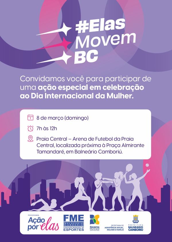 Com o tema #elasmovemBC, a iniciativa busca fortalecer o protagonismo das mulheres por intermédio do esporte – considerado fonte de movimento, transformação, empoderamento e cuidado. “O Dia Internacional da Mulher é um momento de reconhecimento, mas também de ação. Queremos que cada mulher de Balneário Camboriú se sinta valorizada, segura e protagonista da própria história. Este evento simboliza nosso compromisso em promover políticas públicas que incentivem a saúde, o esporte, a autonomia e o bem-estar feminino”, ressalta a prefeita, Juliana Pavan.