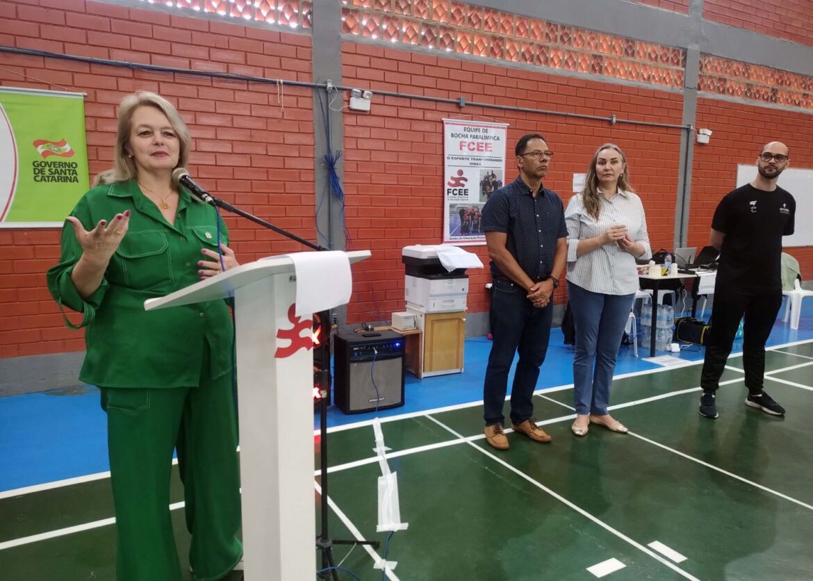Na manhã deste sábado, 14/12, ocorreu a abertura da 2ª Etapa do Circuito Catarinense de Bocha Paralímpica no Ginásio da Fundação Catarinense de Educação Especial (FCEE), em São José. Com a participação de 19 atletas representando 8 municípios de todas as regiões do estado, a etapa integra o calendário oficial de competições do Estado da modalidade de bocha paralímpica. A abertura do evento contou com a presença da presidente da FCEE, Jeane Rauh Probst Leite, do presidente da Fesporte, Freibergue Nascimento, e a deputada federal Daniela Reinher.