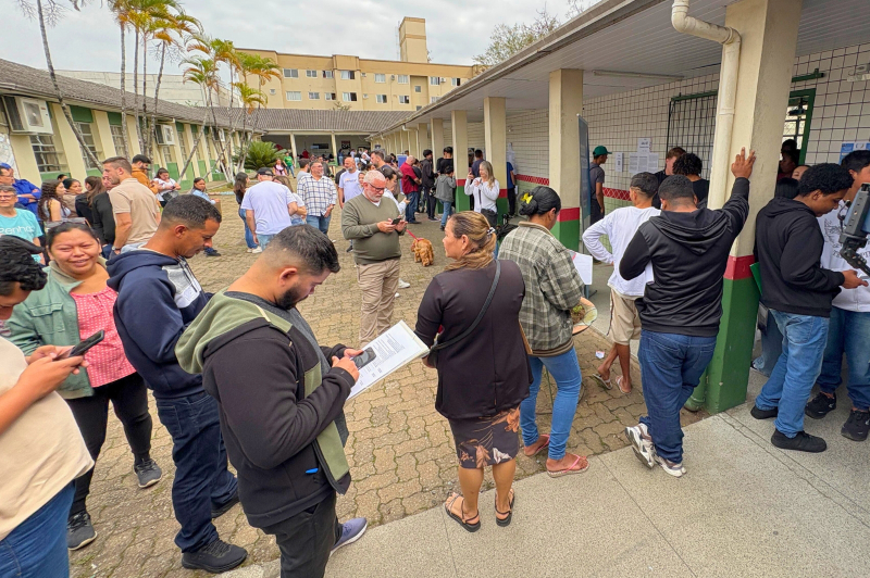 “Eu vim fazer a entrevista no Feirão aqui na escola Dom Afonso Niehues e já saí empregada, graças à Deus! Tô muito feliz, porque faz três meses que estou procurando um emprego, e consegui aqui no Feirão”, comenta com alegria Vitória Rafaela, jovem natural do Sergipe que mora em Itajaí há três anos. Ela foi uma das 1,3 mil pessoas que conquistaram um encaminhamento ou foram contratadas durante o Feirão Emprega+ Itajaí realizado nesse sábado (30) no bairro Cordeiros.