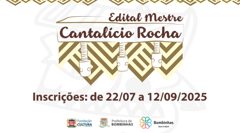 A Fundação Municipal de \Cultura de Bombinhas divulgou que estão abertas, e segue até o dia 12 de setembro, as inscrições para o Edital “Mestre Cantalício Rocha” – Edição 2025, do Fundo Municipal de Cultura, que regulamenta a concessão de auxílio financeiro para incentivo cultural no valor total de R$240.000,00 , destinada a incentivar atividades culturais na cidade. O valor total disponibilizado para aporte financeiro aos projetos serão subdivididos em cotas três cotas: COTA 01: R$ 80.000,00 (cota única); COTA 02: R$ 100.000,00 (duas cotas de R$ 50 mil); e COTA 03: R$ 60.000,00 (três cotas de R$ 20 mil), prioritariamente a proponentes que não tenham sido contemplados com recursos de fomento por meio da Fundação Municipal de Cultura de Bombinhas, nas edições realizadas entre 2015 e 2024.