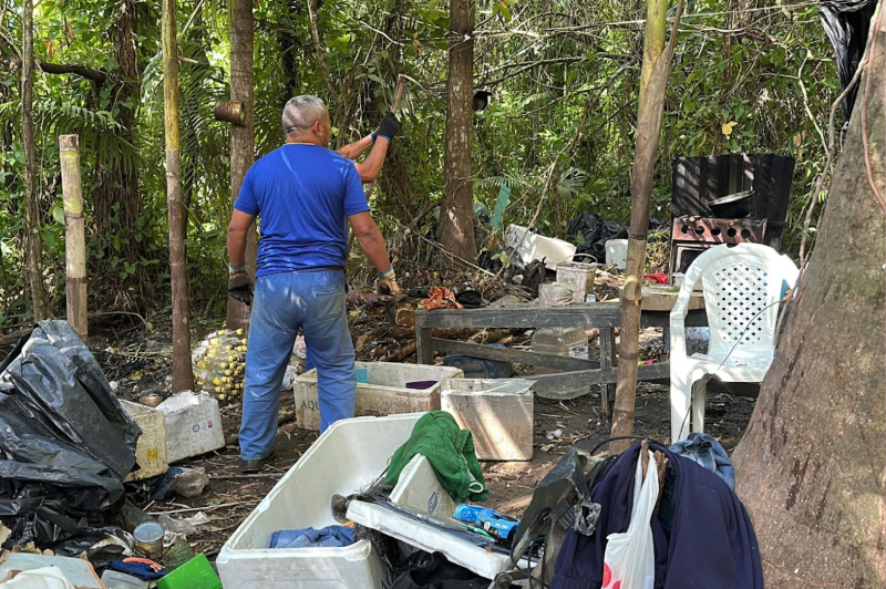 O Instituto Itajaí Sustentável, as secretarias de Assistência Social e de Desenvolvimento Urbano e Habitação, Guarda Municipal de Itajaí e a Polícia Militar participaram da ação conjunta e demoliu a casa improvisada que estava em condições insalubres. No local, havia bebidas alcoólicas, preservativos, homens e uma mulher, além de uma criança e um cachorro. Todos foram retirados do local.
