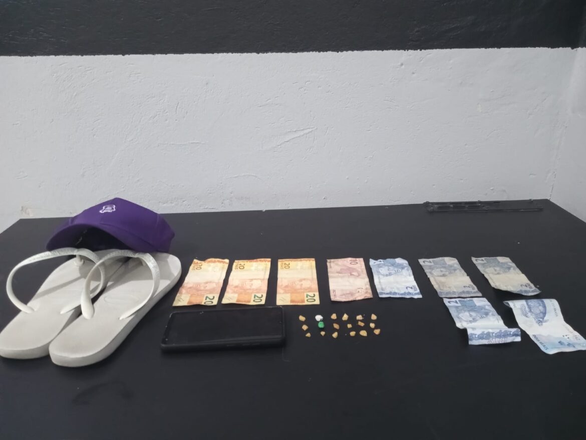 Foram encontradas 18 pedras de crack e R$ 80,00 em espécie.