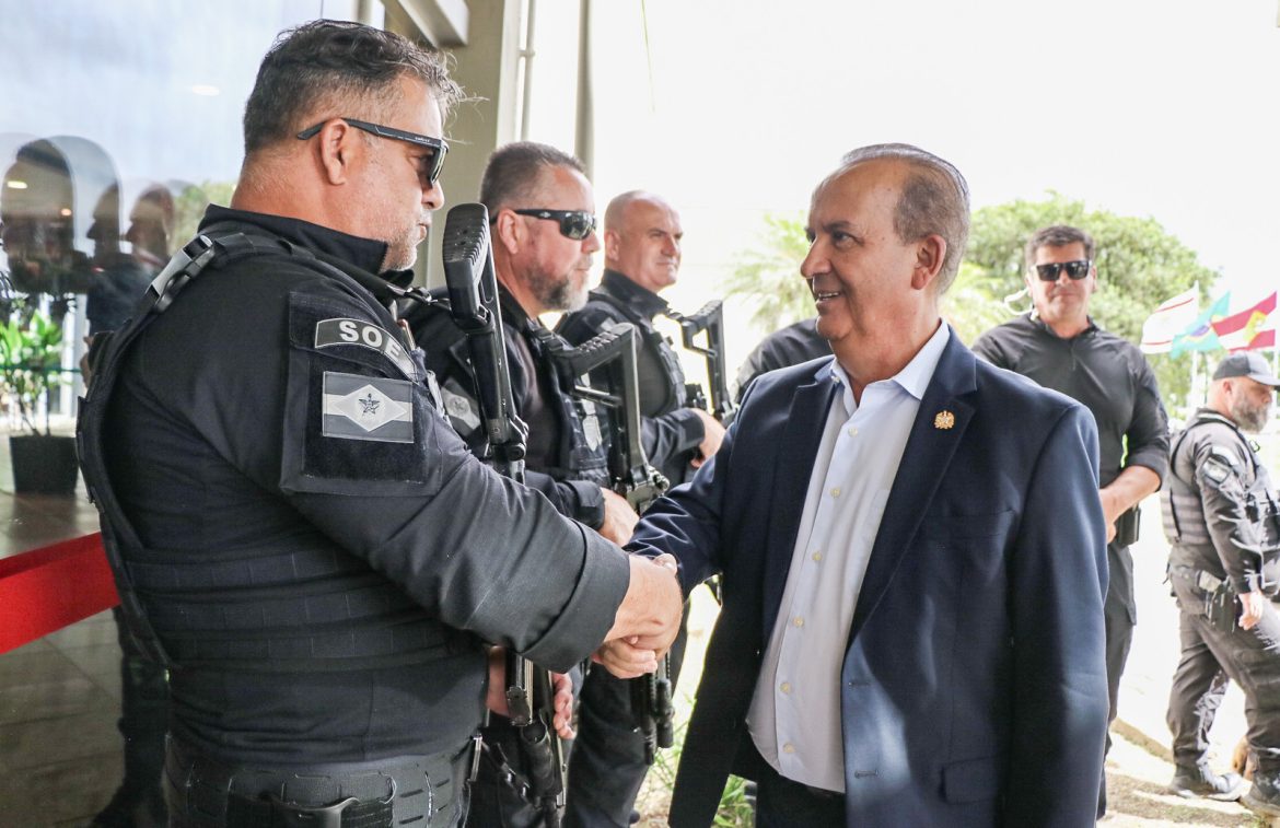 O governador Jorginho Mello fez uma participação surpresa em um evento da Secretaria de Administração Prisional e Socioeducativa (SAP) realizado na Capital de Santa Catarina. Na manhã desta terça, 23, começou a reunião de superintendentes e diretores de presídios da regional da Grande Florianópolis e vai até esta quarta, 24. O governador entregou as novas carteiras funcionais de policiais penais presentes no evento.