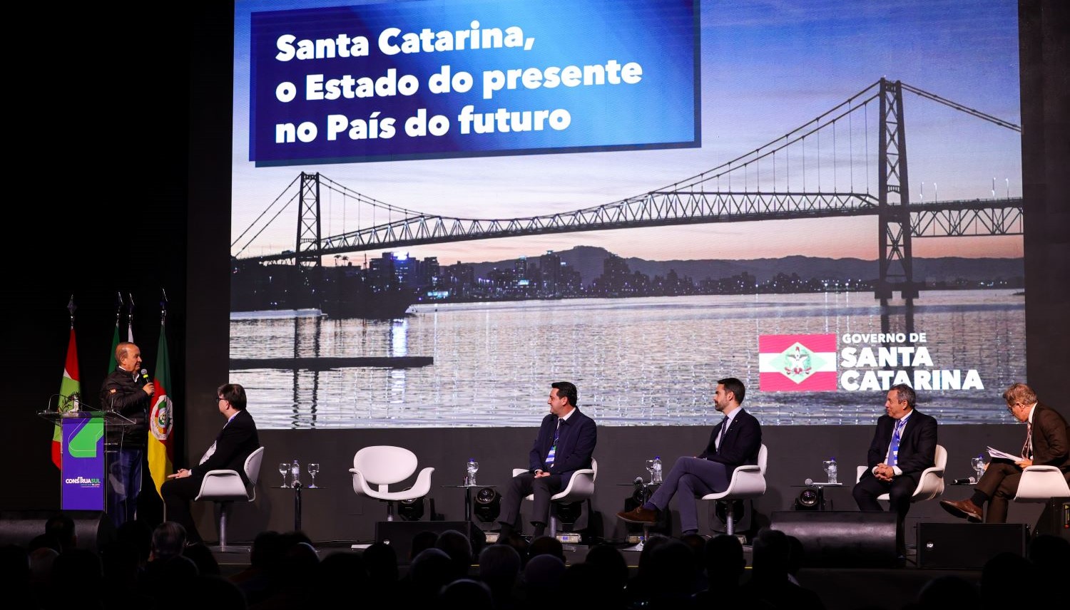 O governador Jorginho Mello participou da abertura da 1ª edição do Construa Sul 2025, em Curitiba, nesta quinta-feira, 12. O evento promovido pela Câmara Brasileira da Indústria da Construção tem como tema “Por que investir nos estados do Sul do País?” e contou com a apresentação do governador catarinense sobre as potencialidades e o excelente ambiente de negócios de Santa Catarina. Os governadores do Paraná, Ratinho Junior; e do Rio Grande do Sul, Eduardo Leite; também participaram da cerimônia.