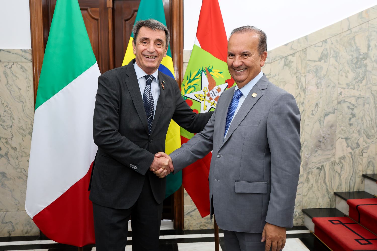 As relações econômicas também integram o escopo da visita. Conforme dados do Observatório FIESC apresentados no briefing do encontro, o fluxo comercial entre Santa Catarina e a Itália mantém-se ativo. Em 2025, as exportações catarinenses para o país europeu totalizaram cerca de US$ 169,7 milhões, com predominância no envio de motores elétricos e madeira. No sentido inverso, as importações somaram US$ 683,6 milhões, compostas majoritariamente por veículos e produtos farmacêuticos.