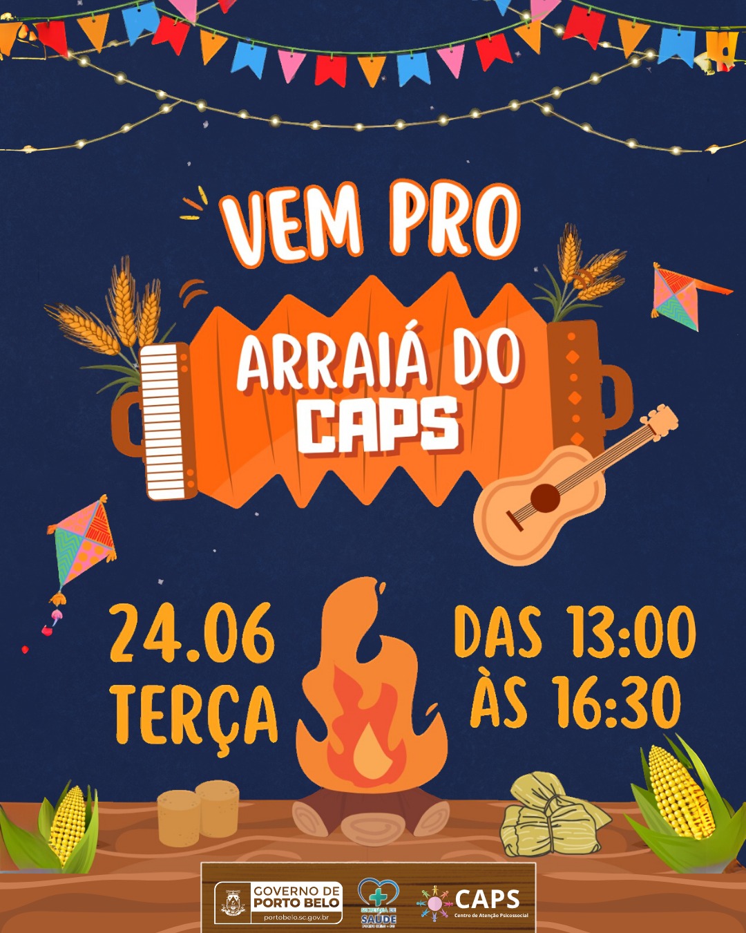 O Governo de Porto Belo, por meio da Secretaria Municipal de Saúde e do Centro de Atenção Psicossocial – CAPS, realizará um evento especial para toda a comunidade. Na próxima terça-feira (24), das 13h às 16h30 acontece o Arraiá do CAPS.